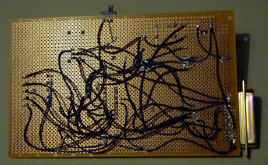 Auf einer Lochrasterplatine mit Spaghettiverdrahtung sieht das dann so